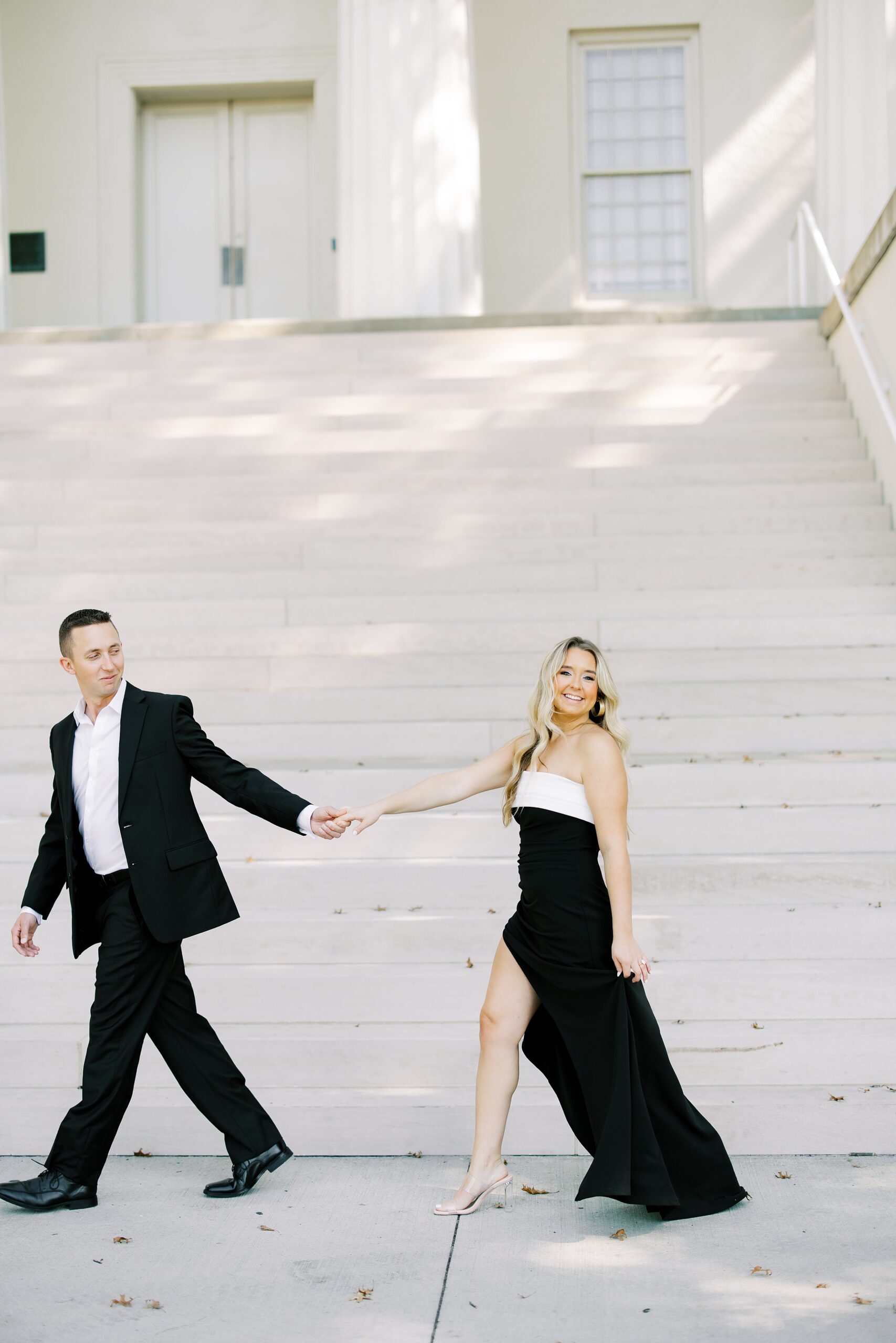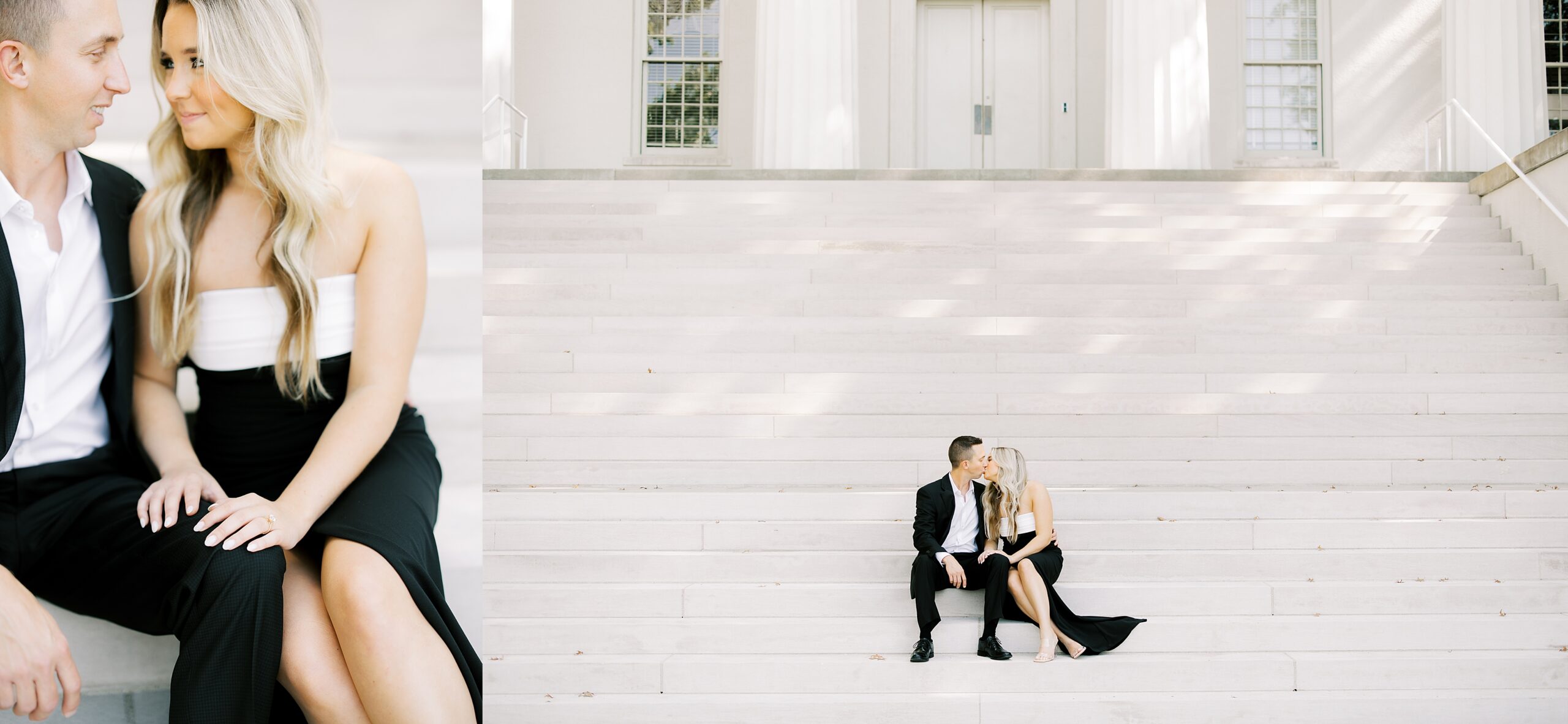 Kiley really wanted the best of both worlds for hers and Brandon’s engagement session, Kentucky foliage but also a downtown vibe. I love that their session starts with bold, vibrant colors and ends with smooth classic tones while in their formal attire! These grand columns gave us a beautiful view of symmetry and the concrete steps were the perfect prop. These two are as sweet as their beautiful as well. Couldn’t have asked for a better evening to document their engagement!