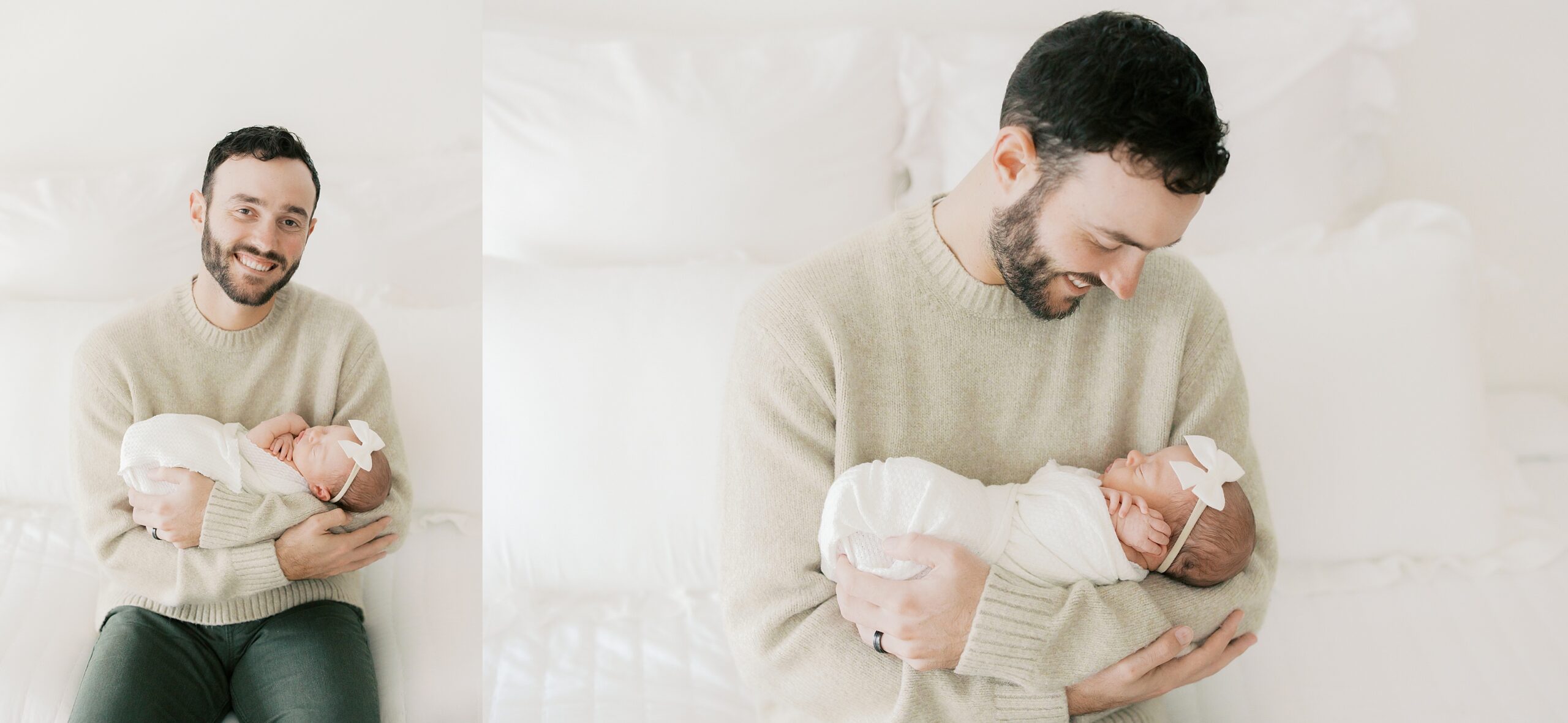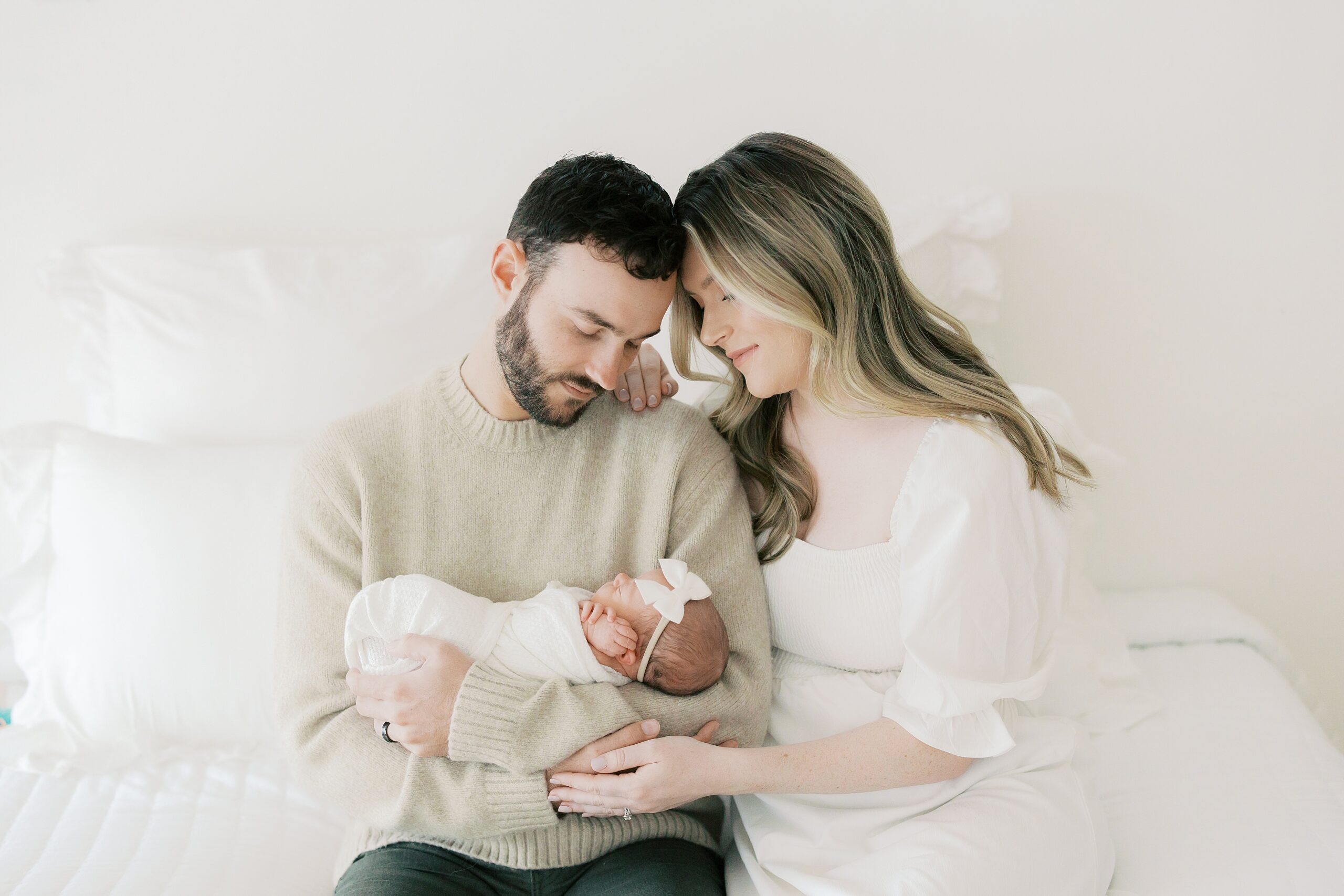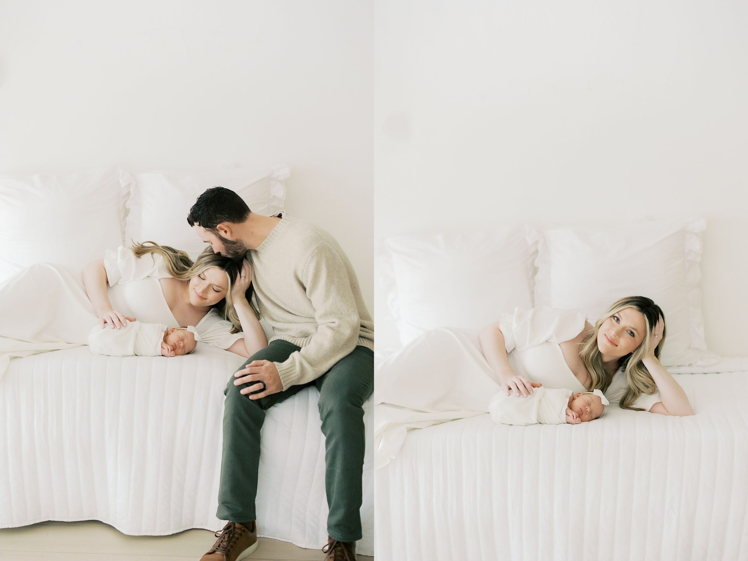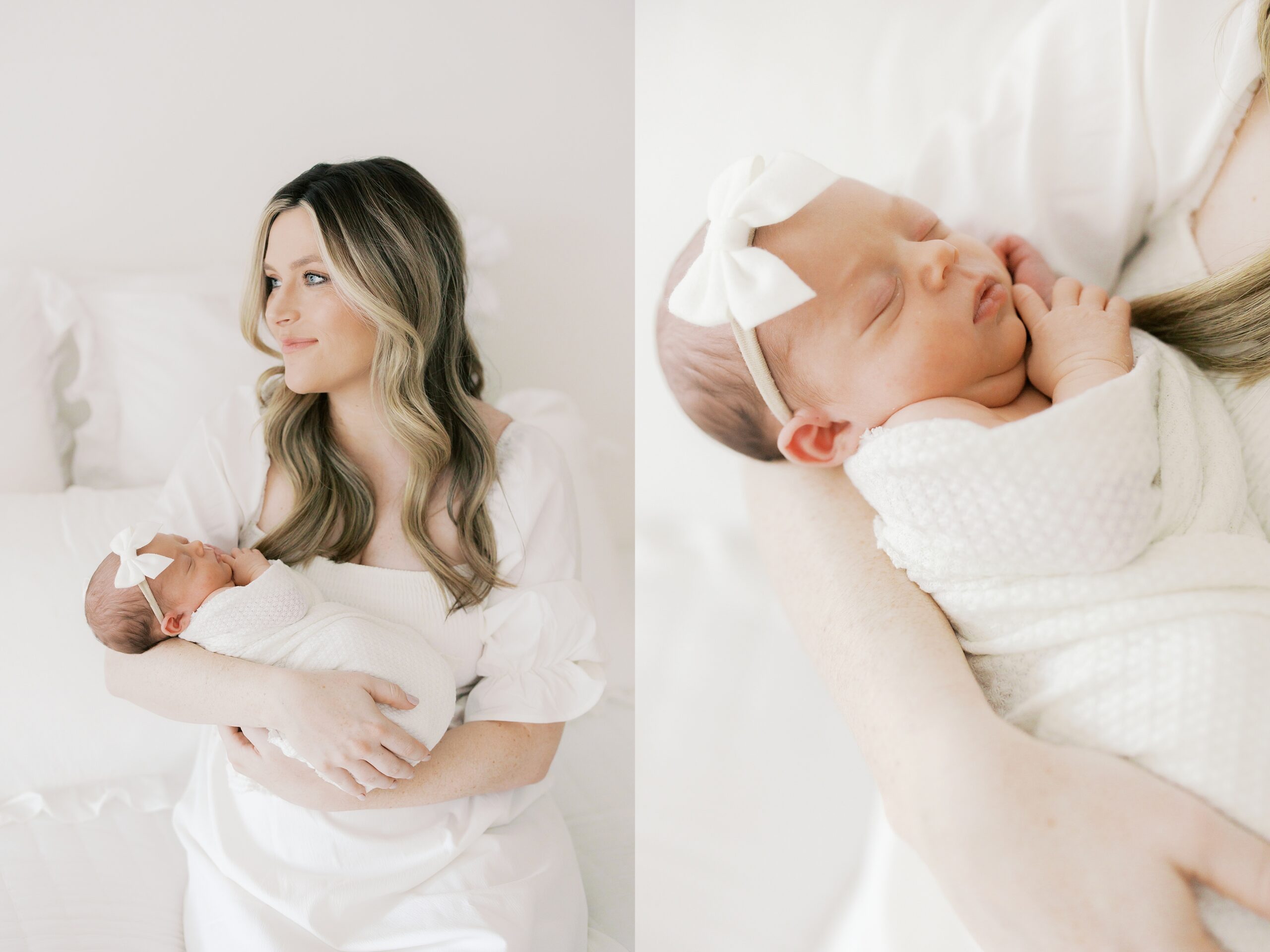 Mom is wearing a simple white dress from the client wardrobe